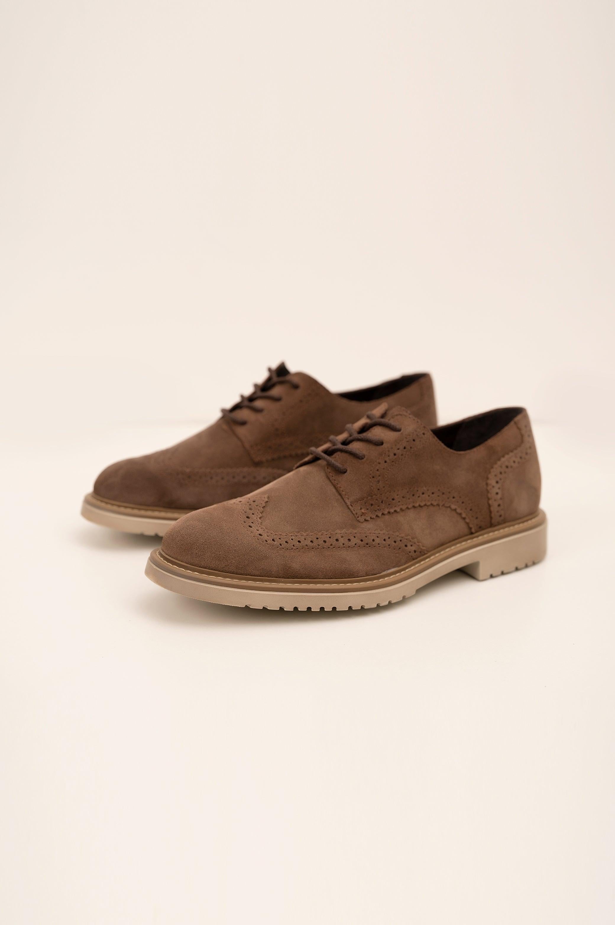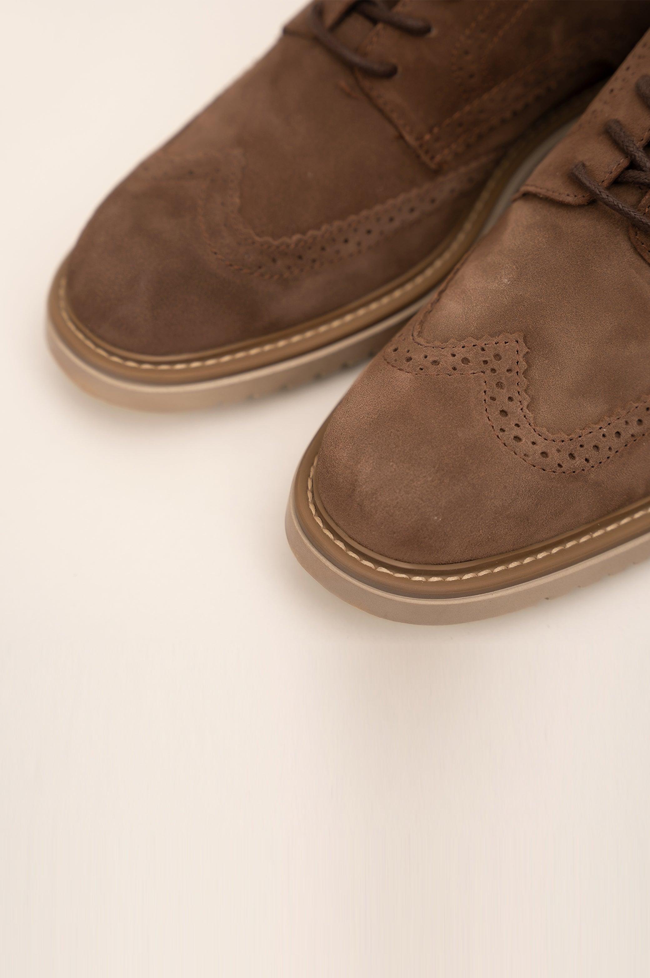 - Brogue gritted outsole- Outer top suede finish- Panel stitching -Material: 100% real leather