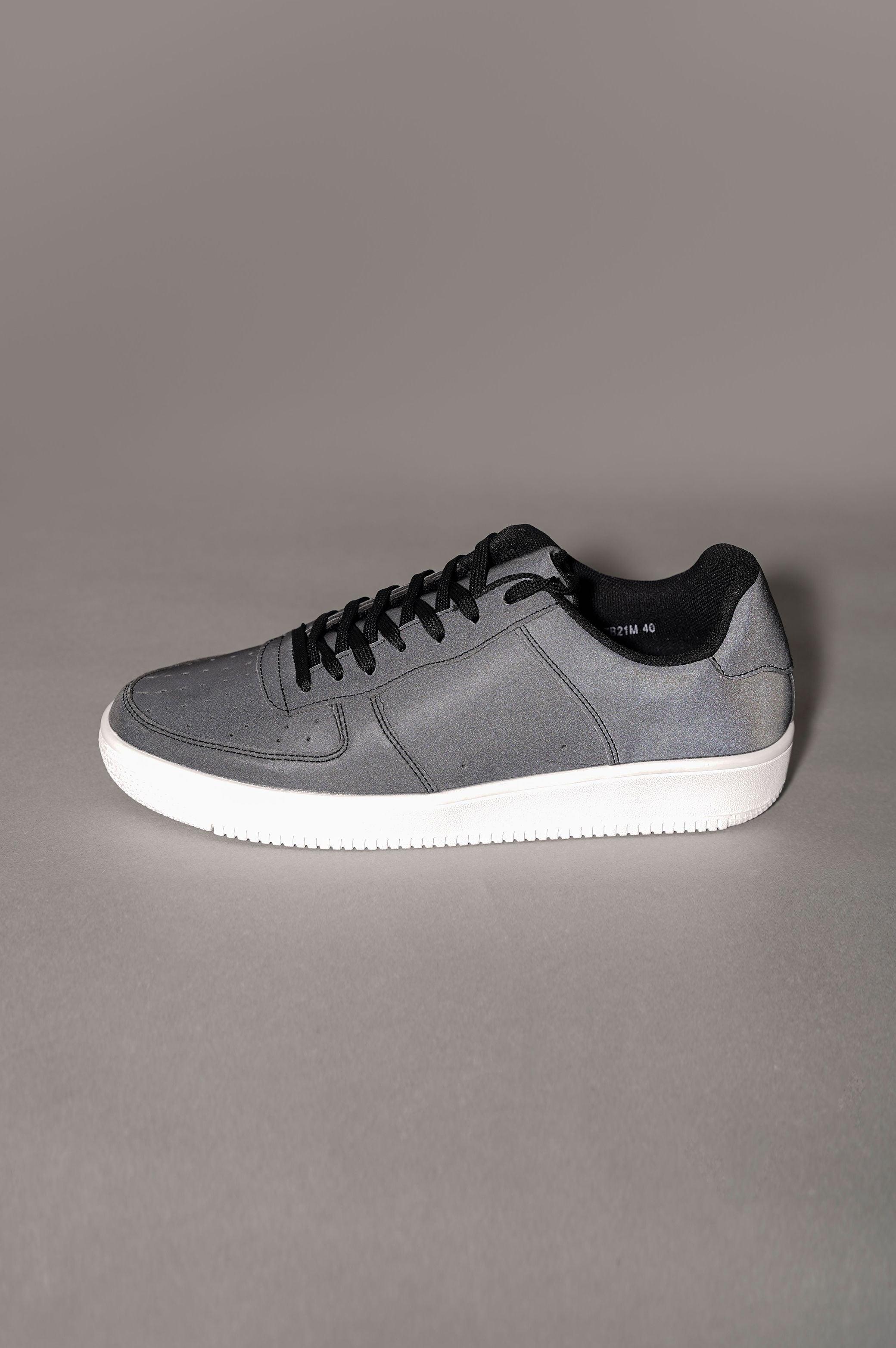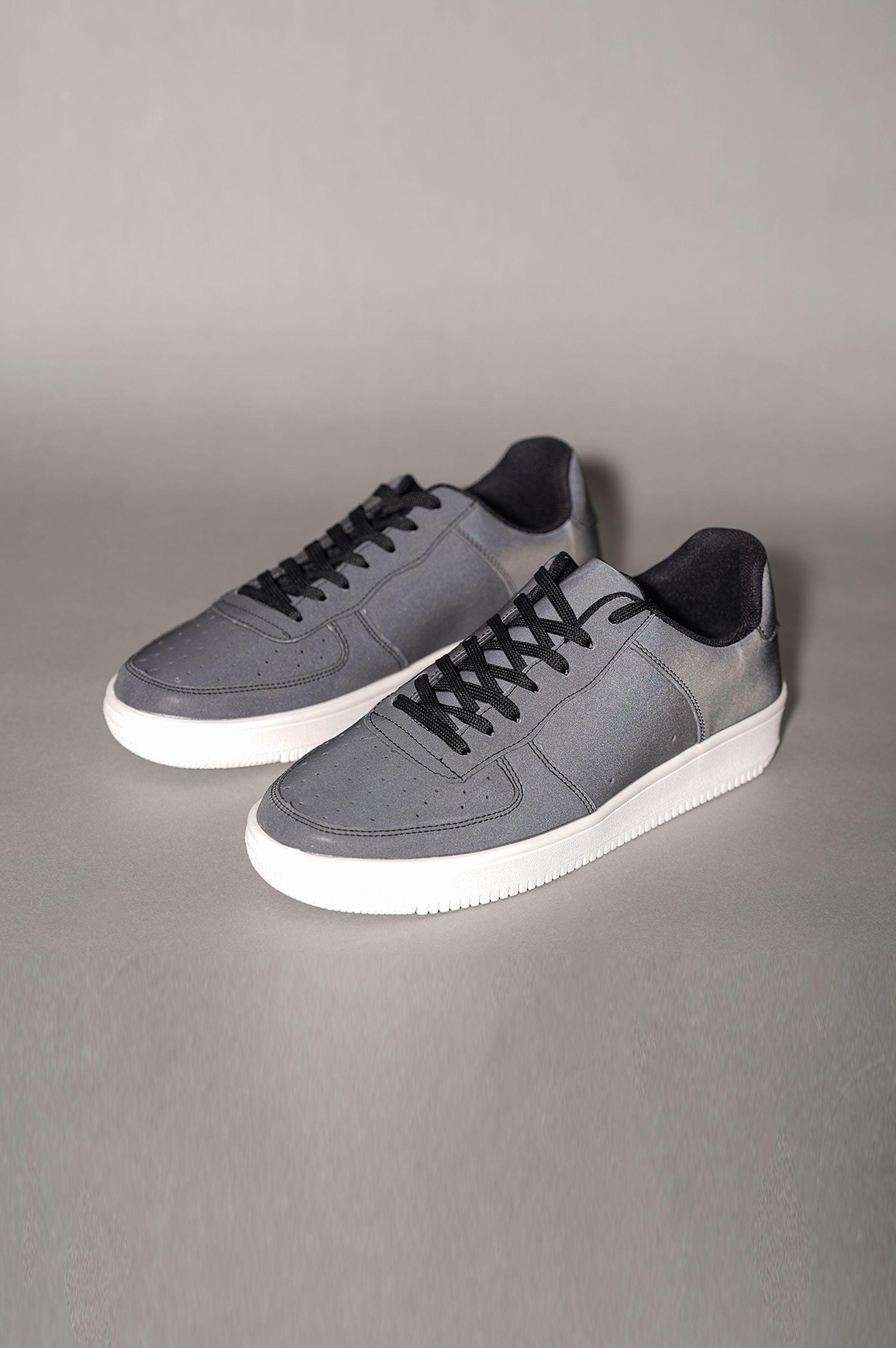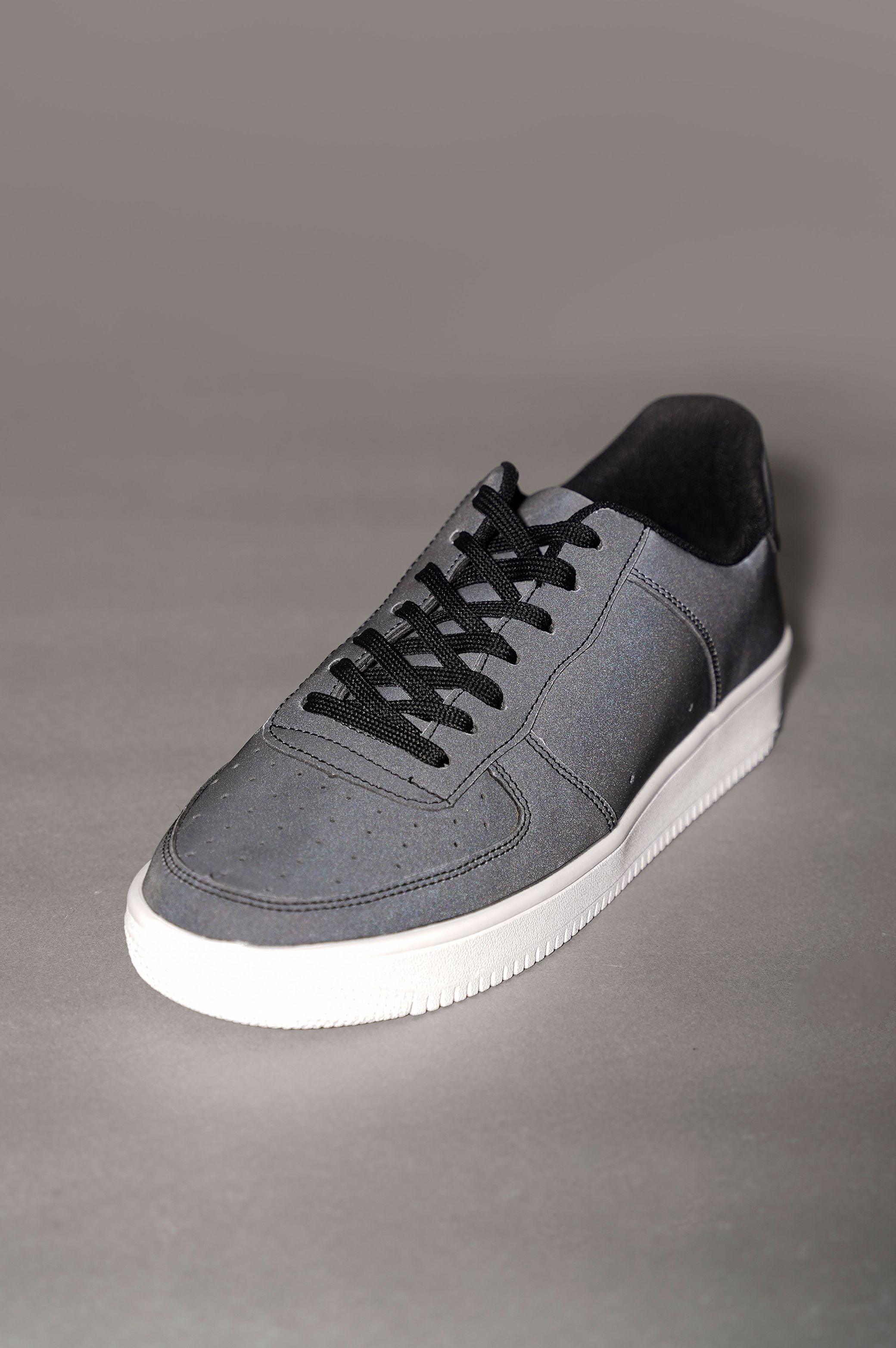 Reflective trainers shine bright when light hits them in the dark.- Low top lace-ups- Perforated toe vamp for breathability- Chunky midsole- Durable rubber outsole- Textured grip tread.Note: The actual color of the product may vary slightly from the image.