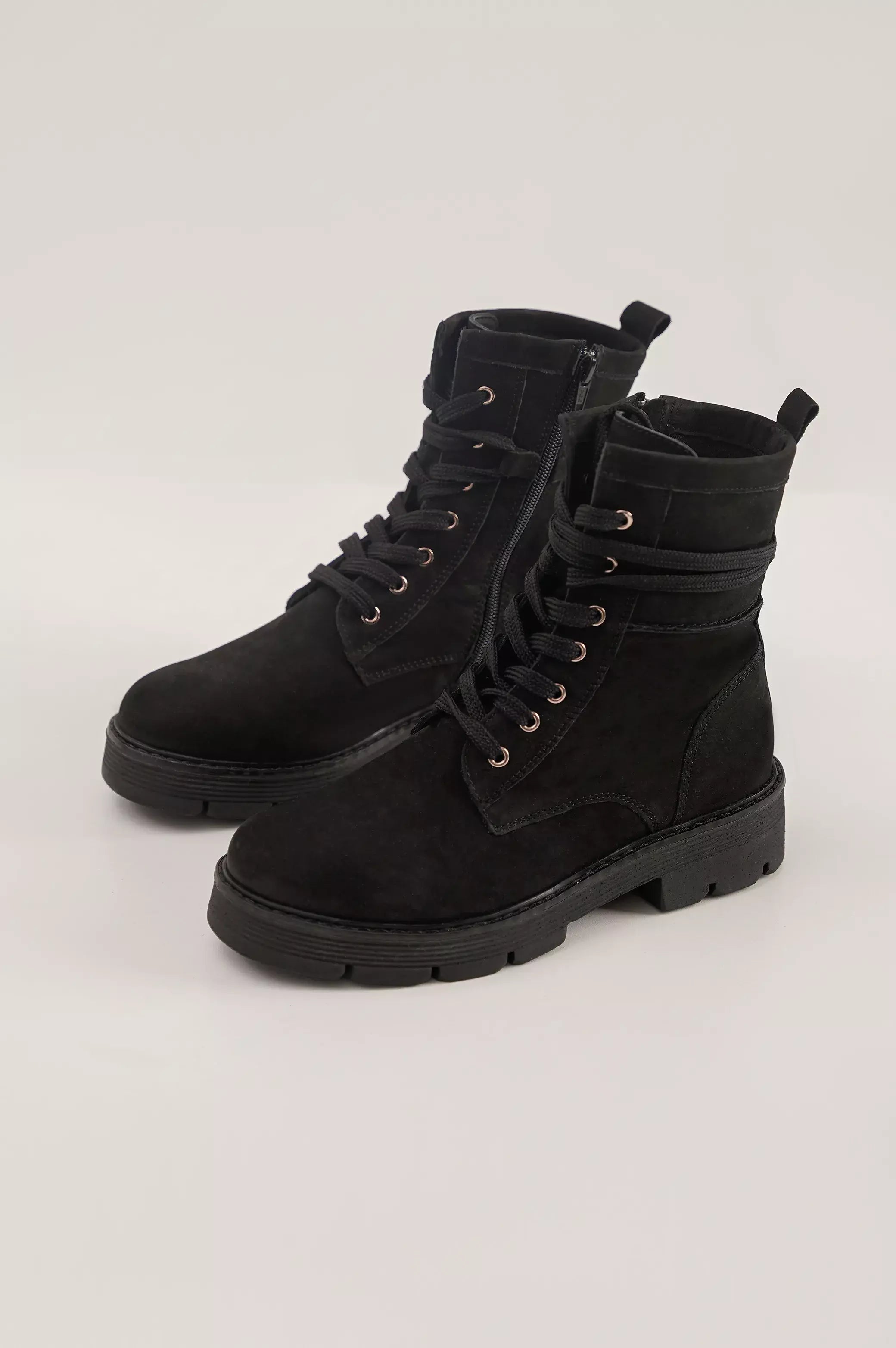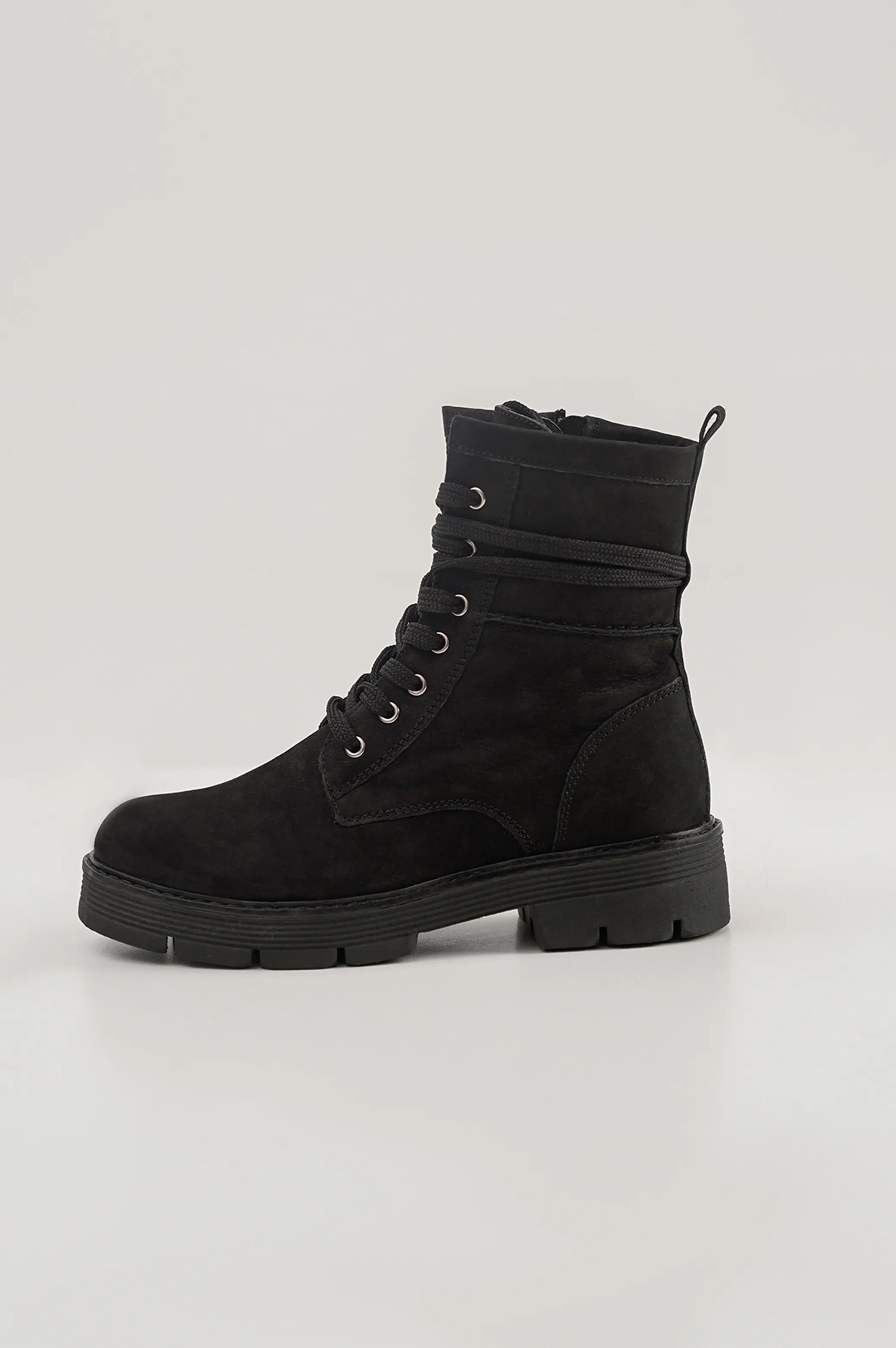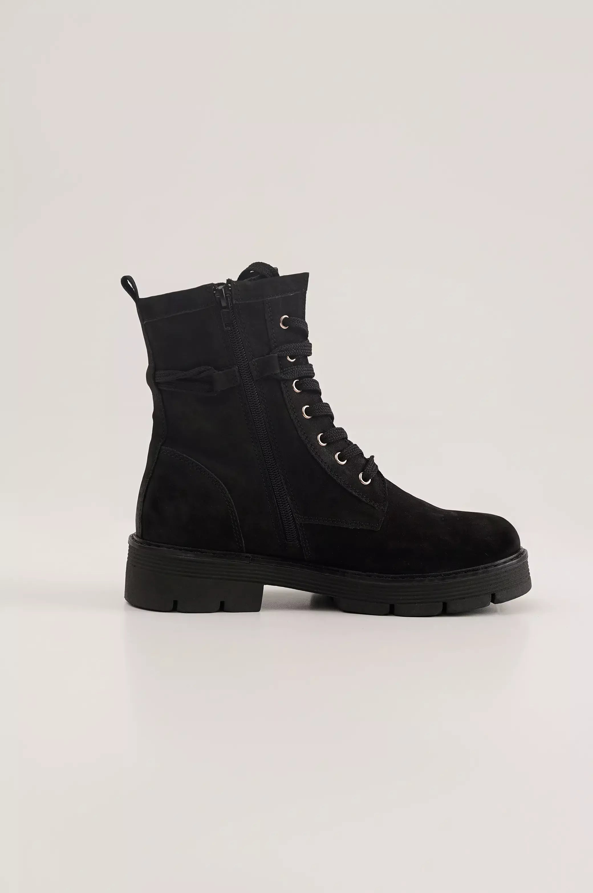 Biker boot with chunky platform outsole.