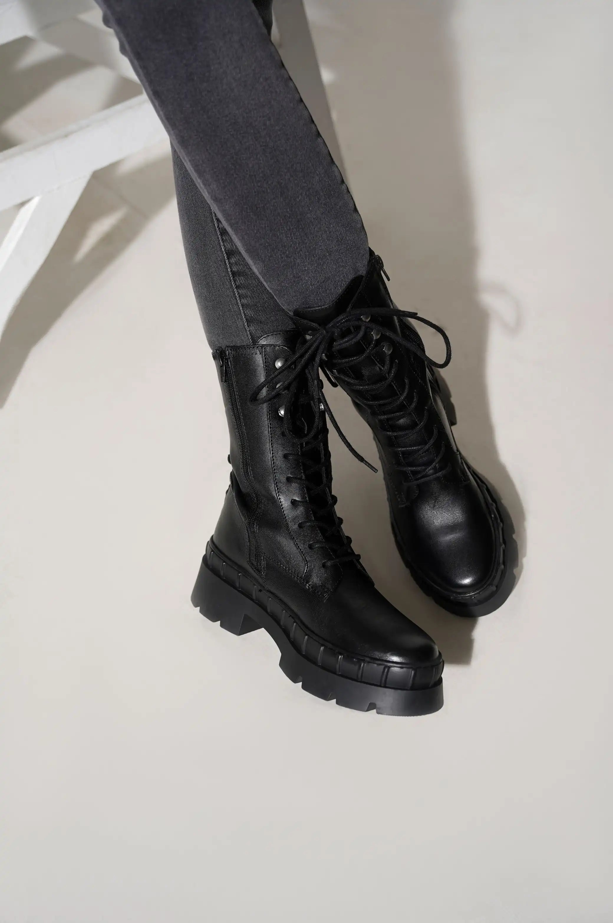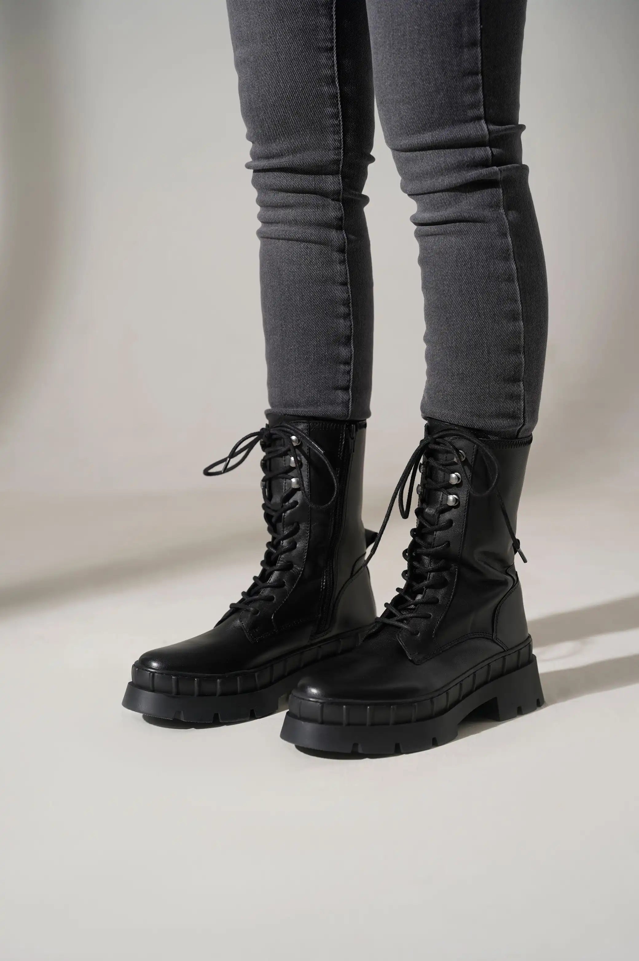 - Chunky gritted rubber outsole- Lace-ups- Side zipper- Leather upper