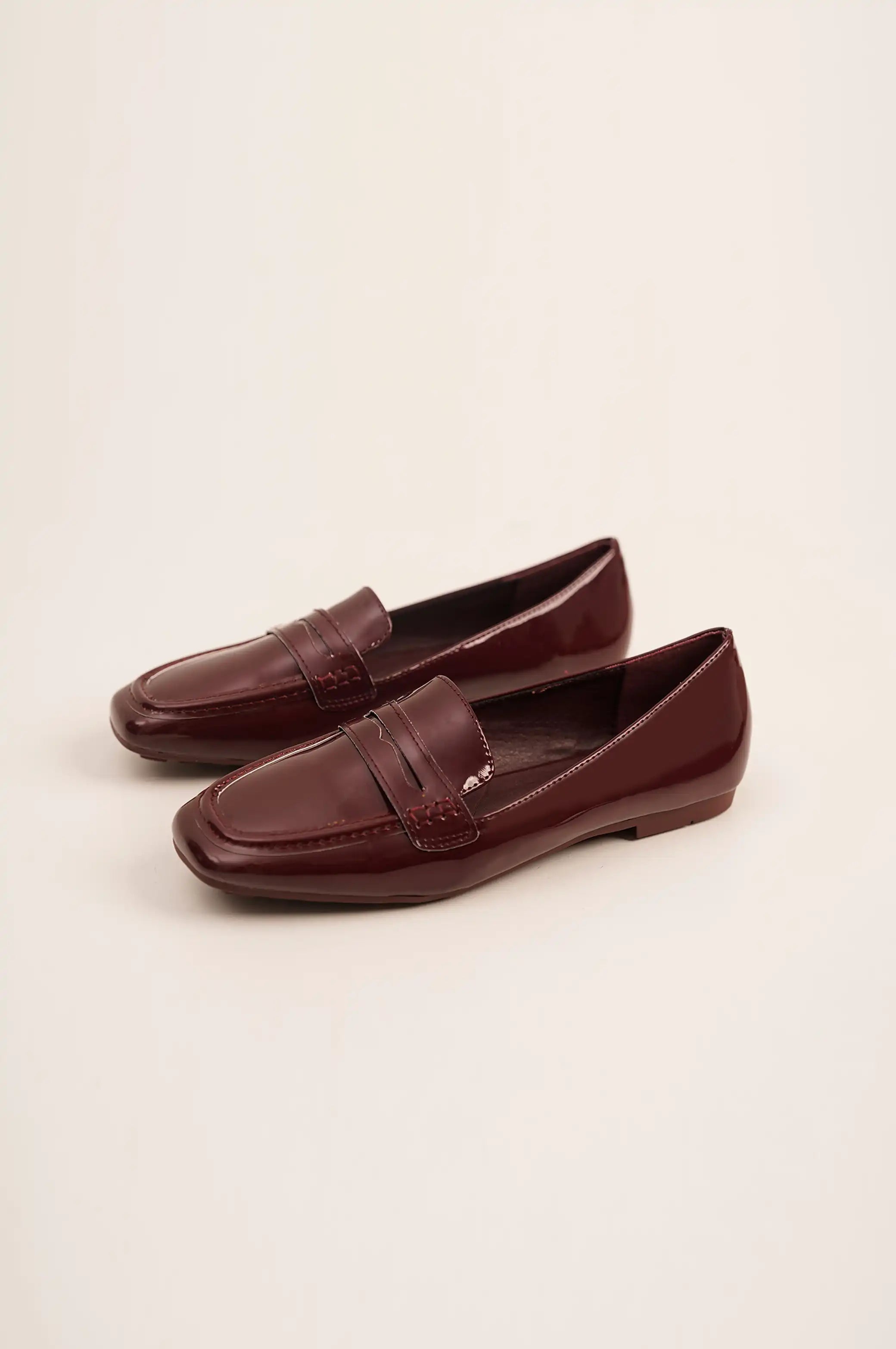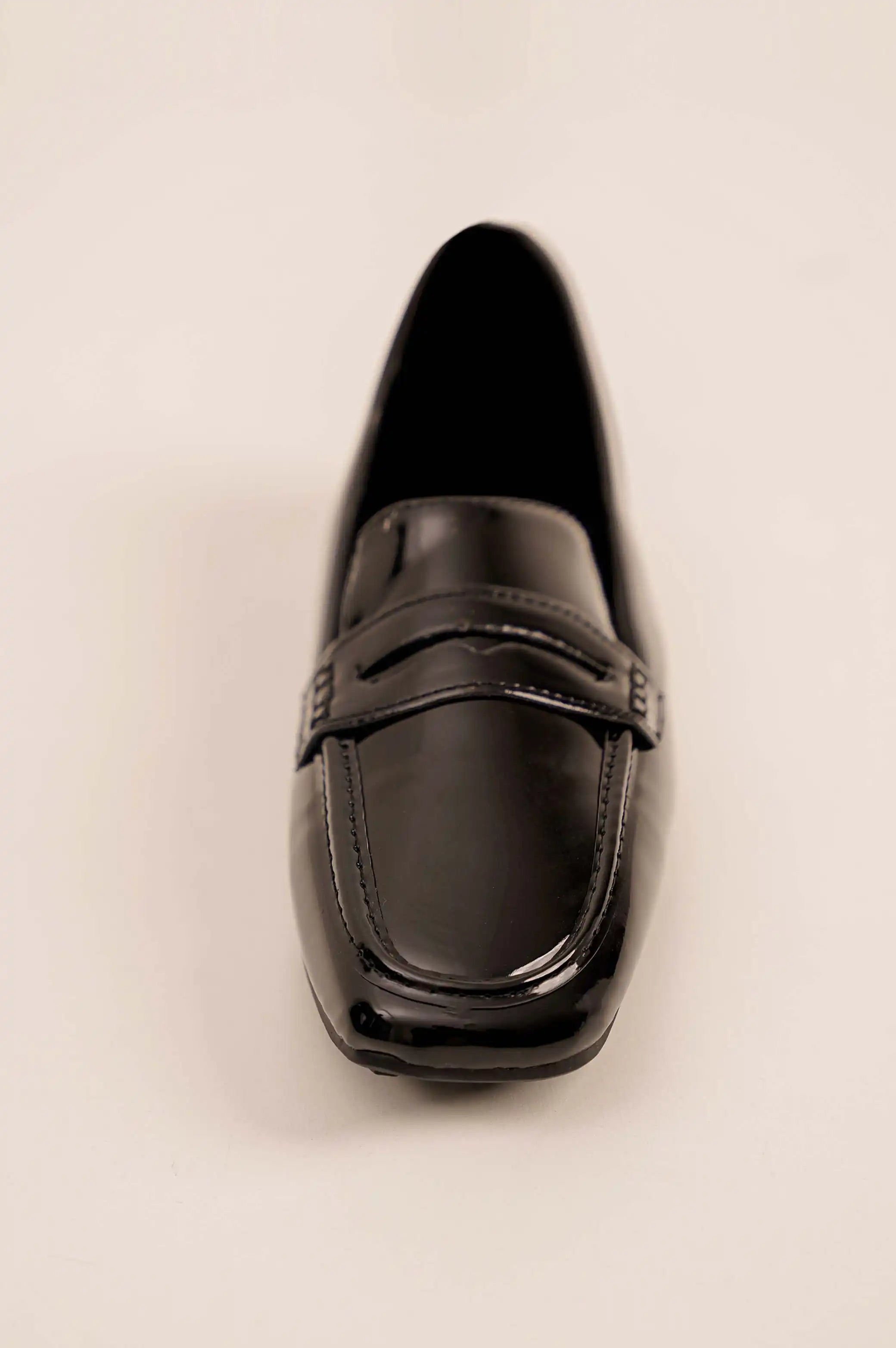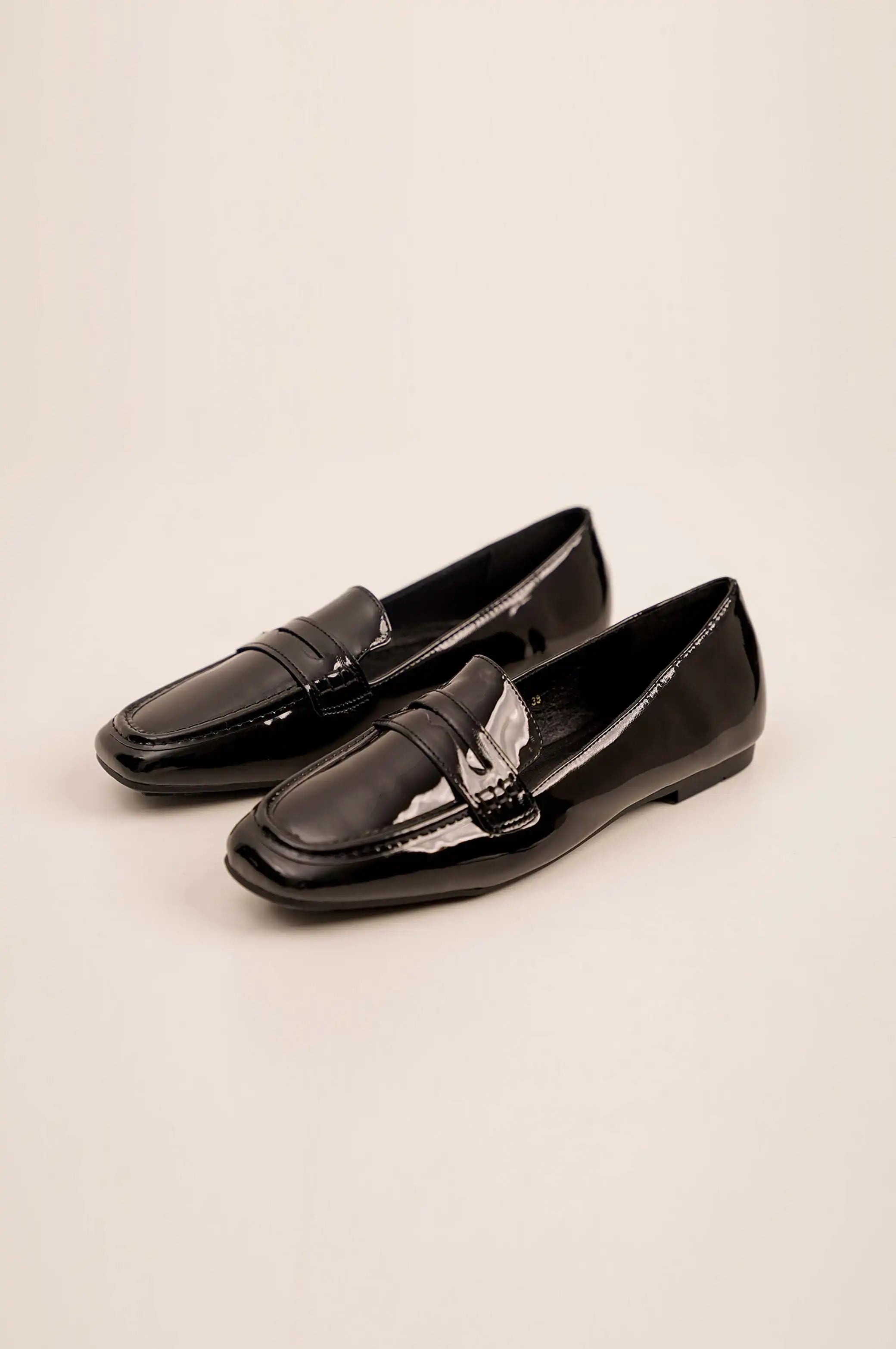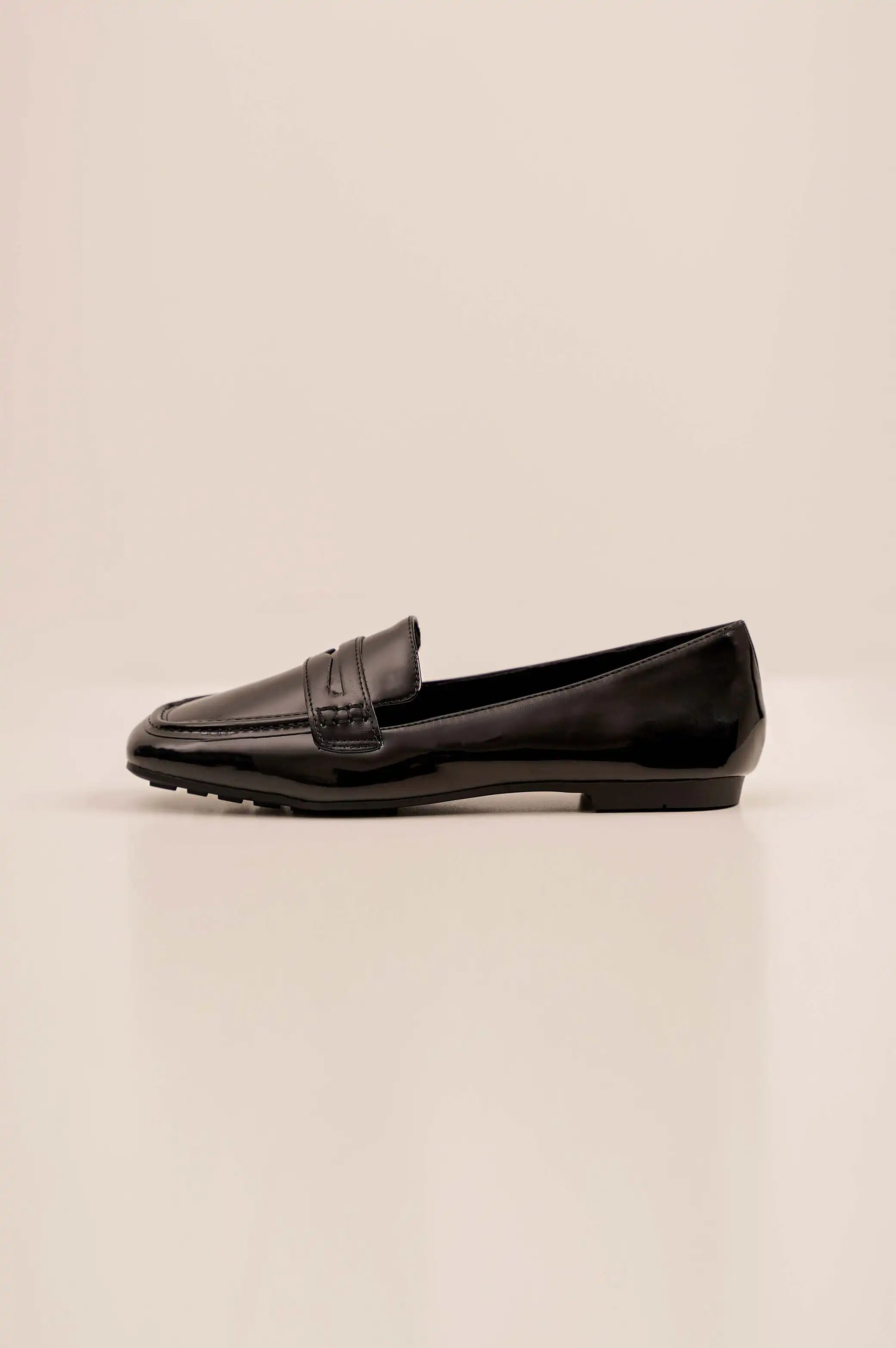 Soft vegan patent leather loafer.