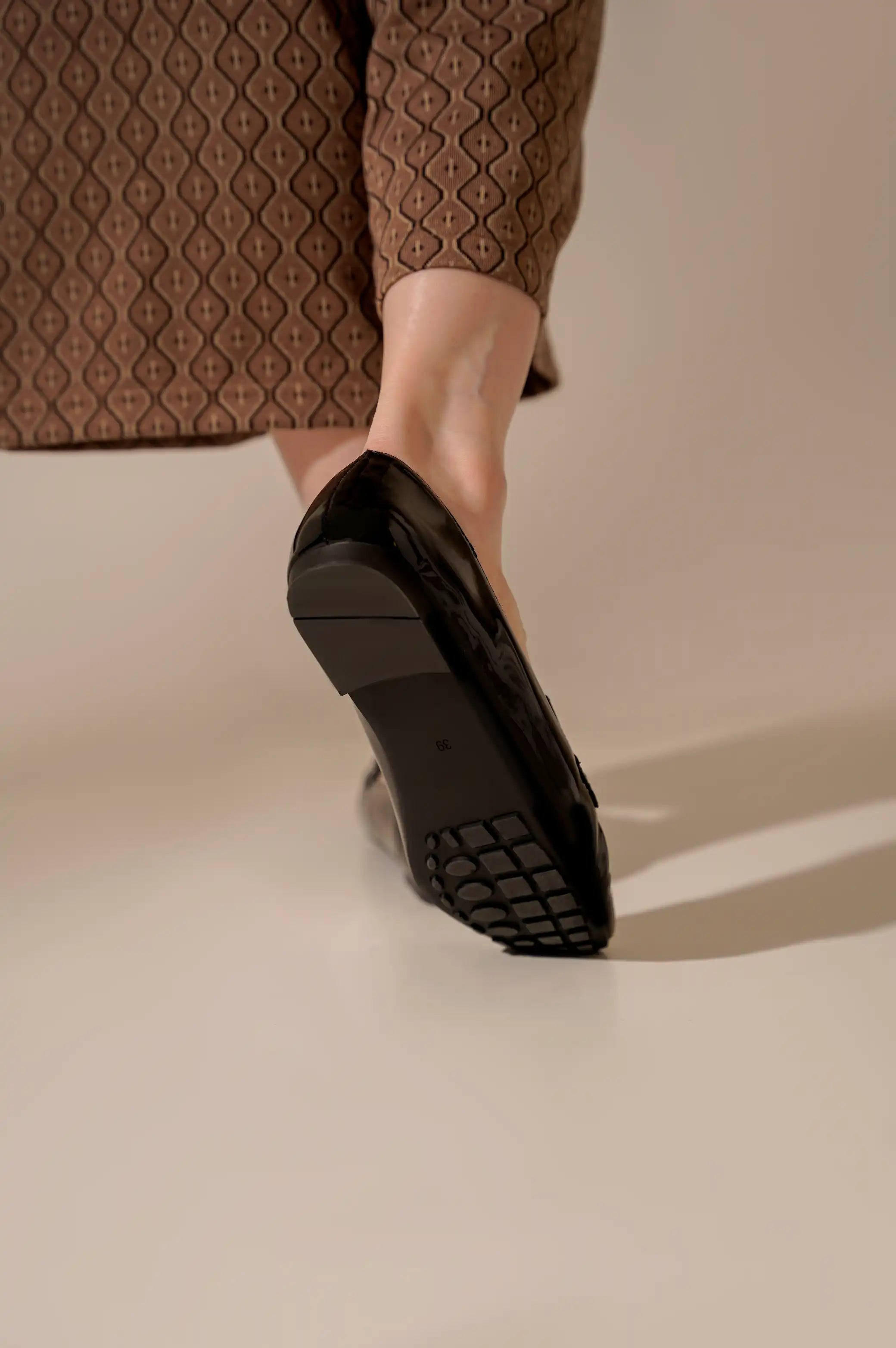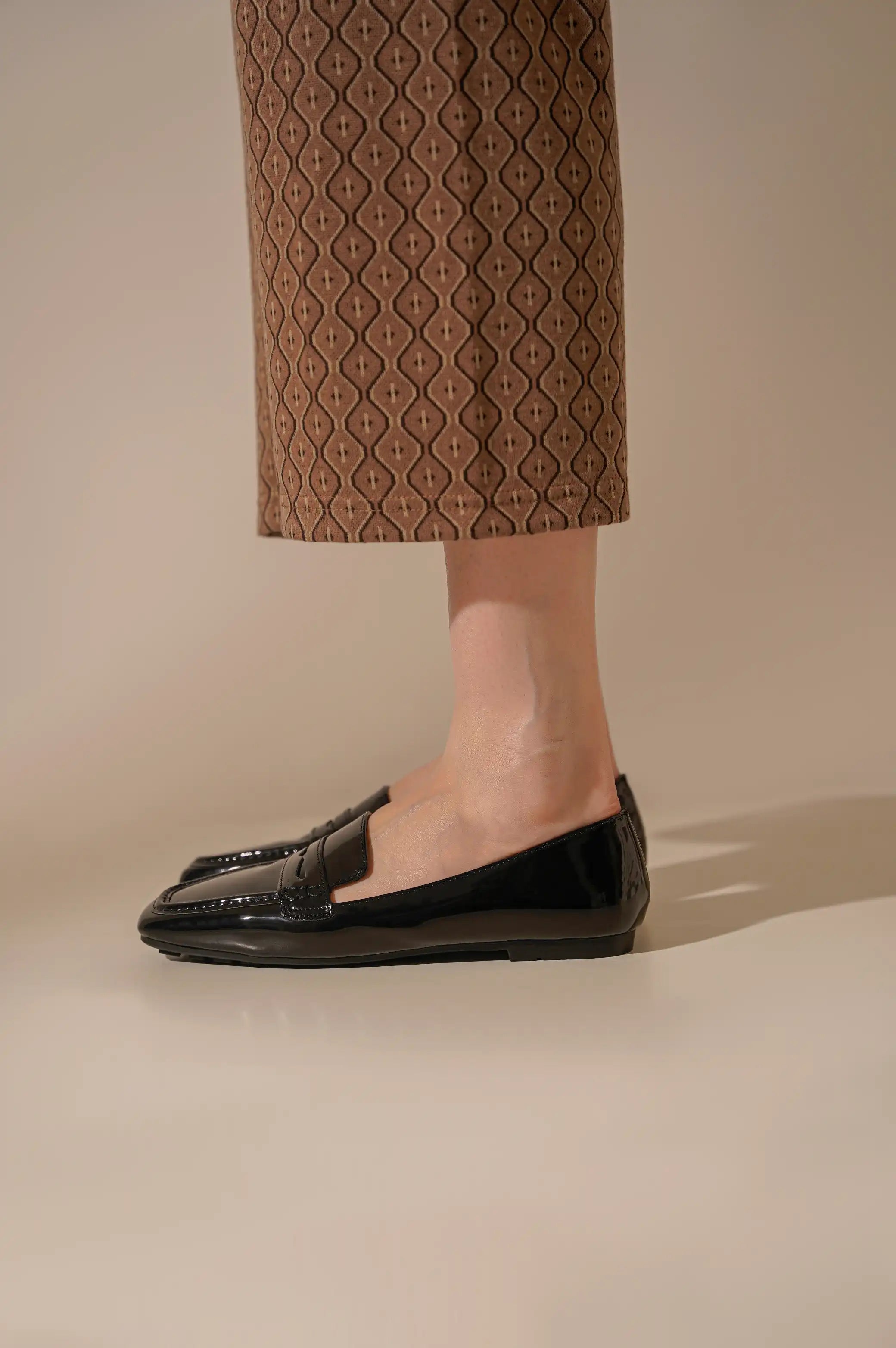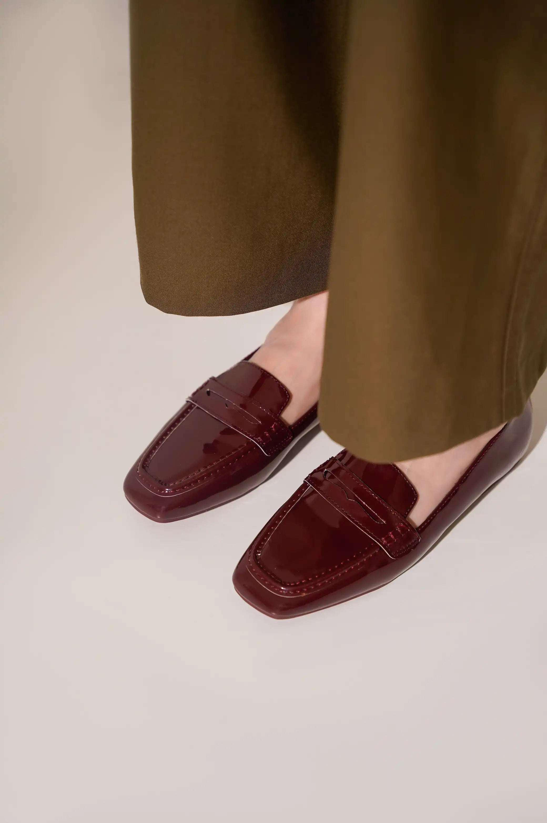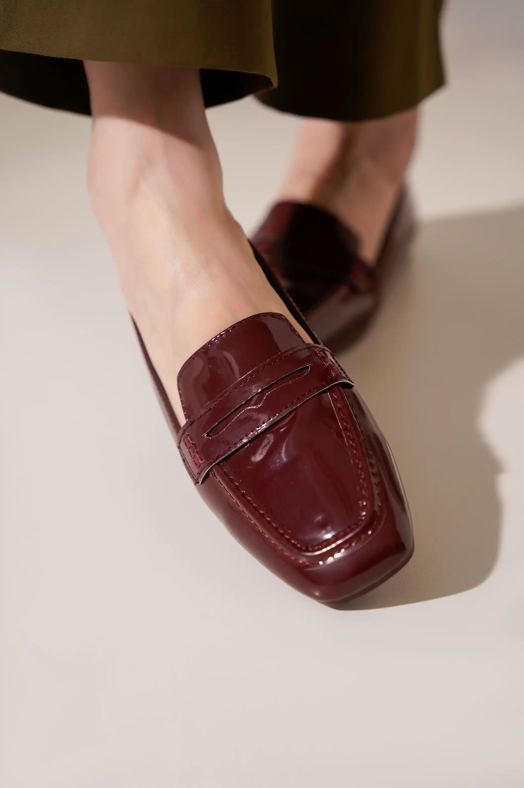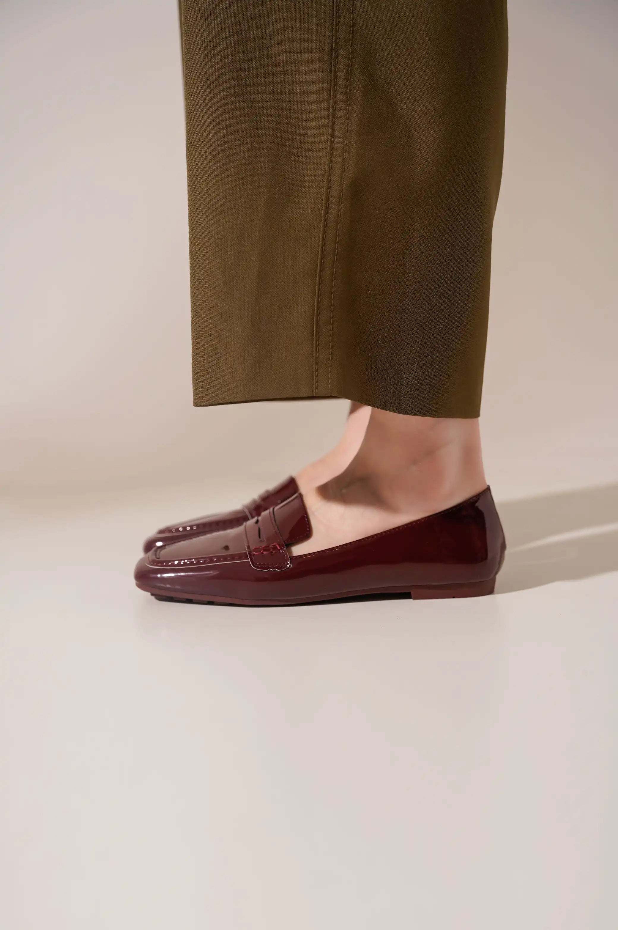 Soft vegan patent leather loafer.