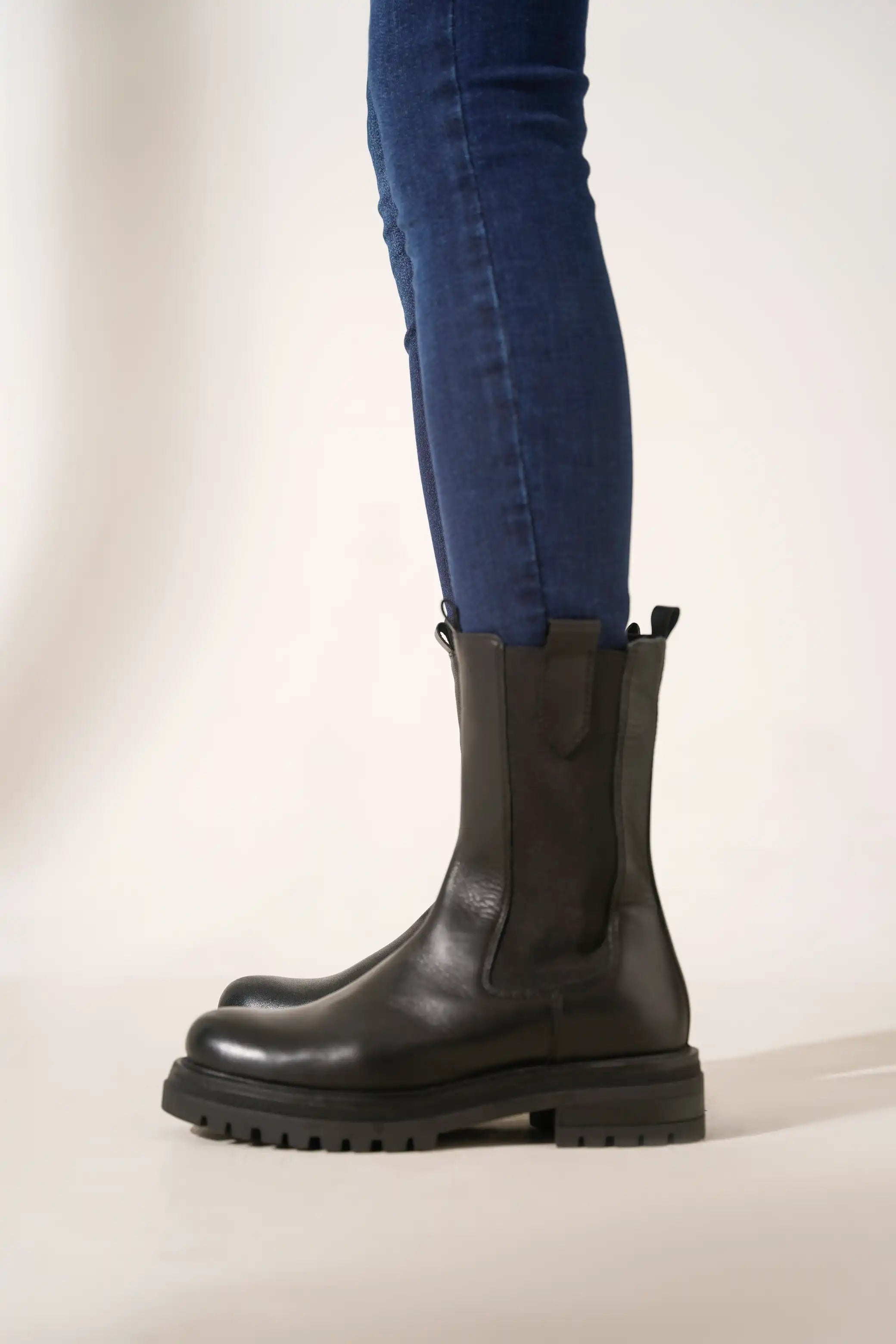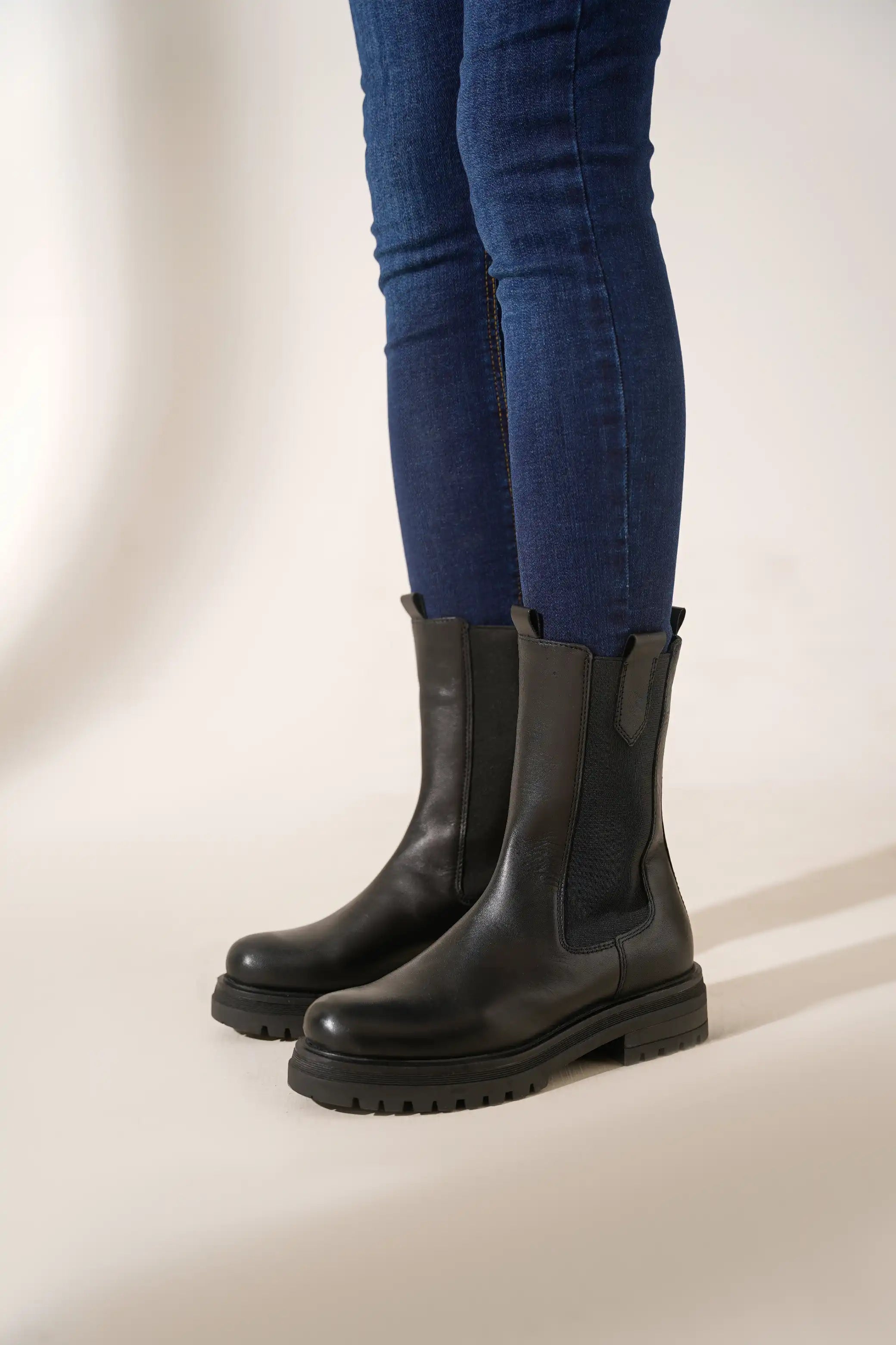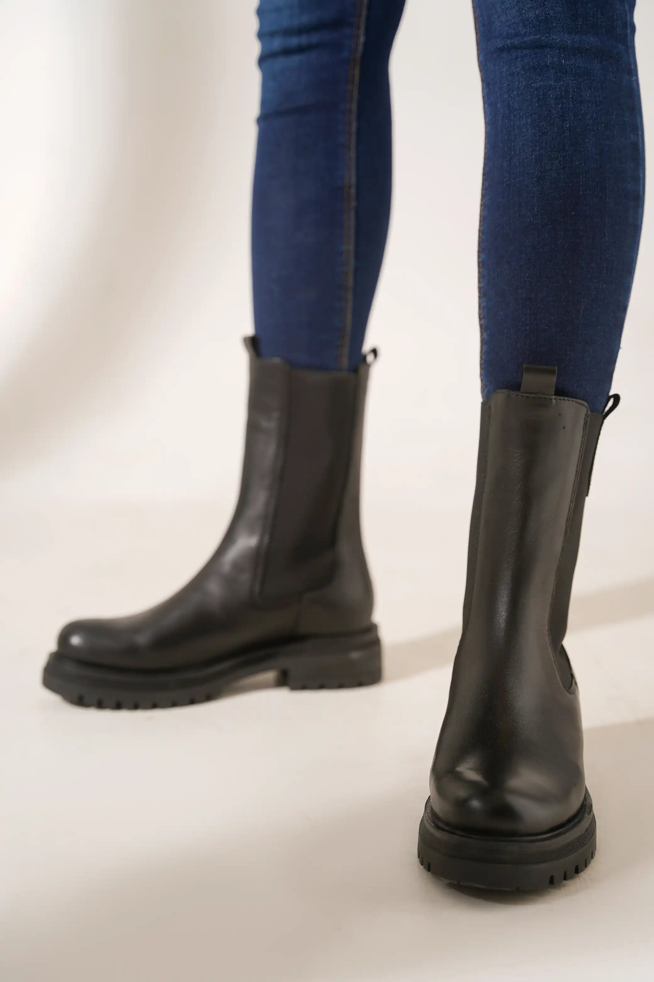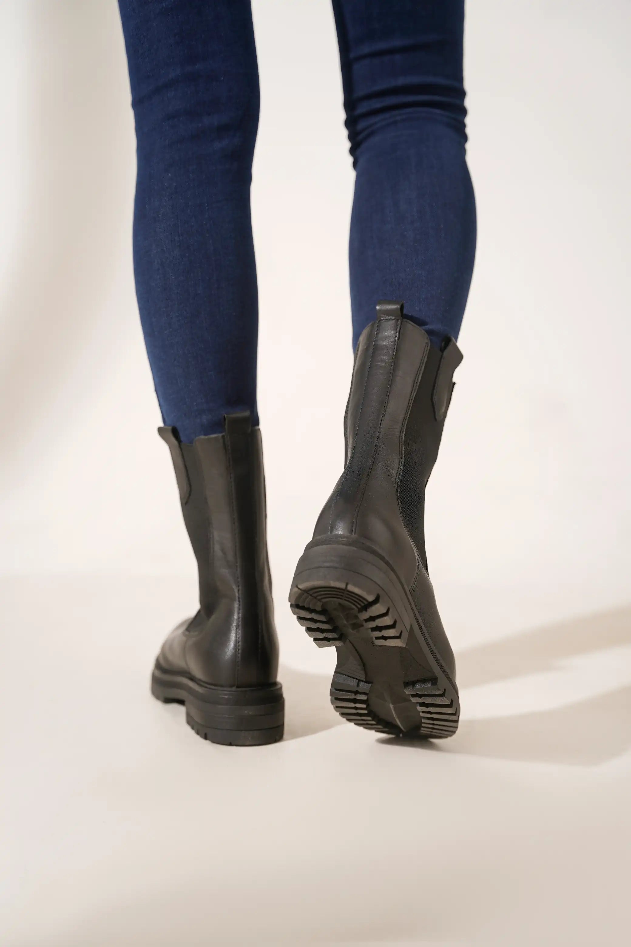 - Chunky gritted rubber outsole- Elastic side panel for ease of wearing- Material: 100% ethically sourced genuine leather and soft rubber outsole